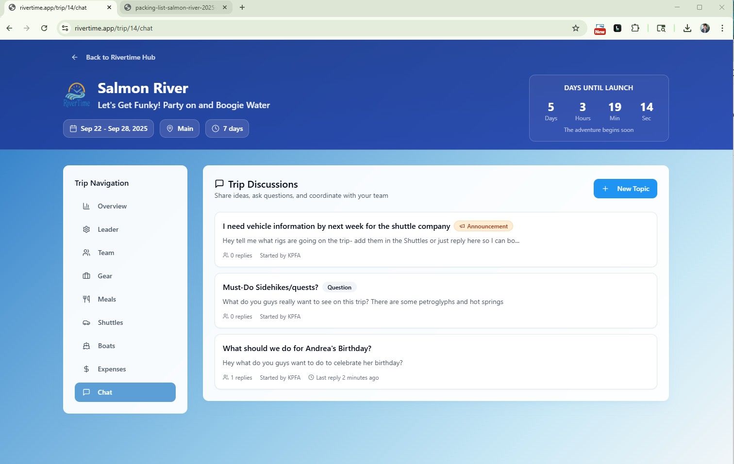 This app supports the logistics while also getting your crew to act like a team from the beginning- because let's get real- nobody is or should be a cruise director when it comes to river trips.