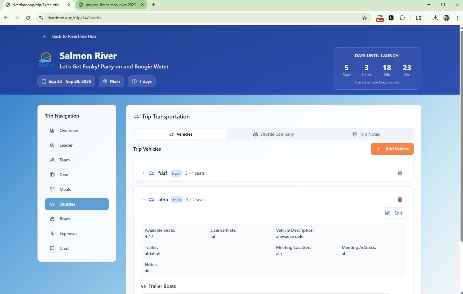 ✅ Keep your trip details all in one place — shuttle info, reservation dates, and gear notes accessible anytime from your phone or desktop.