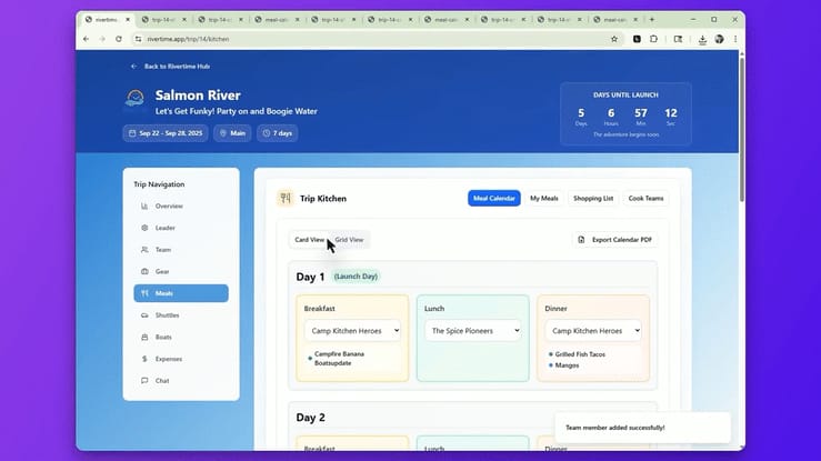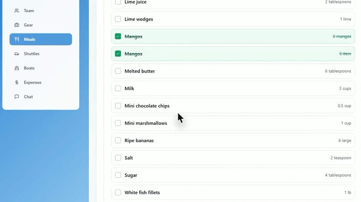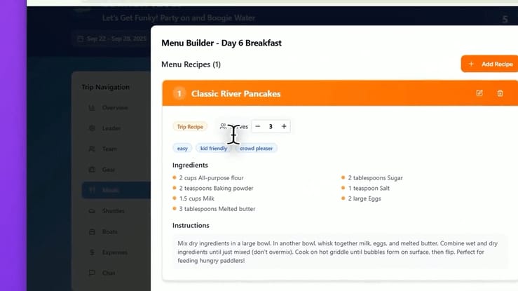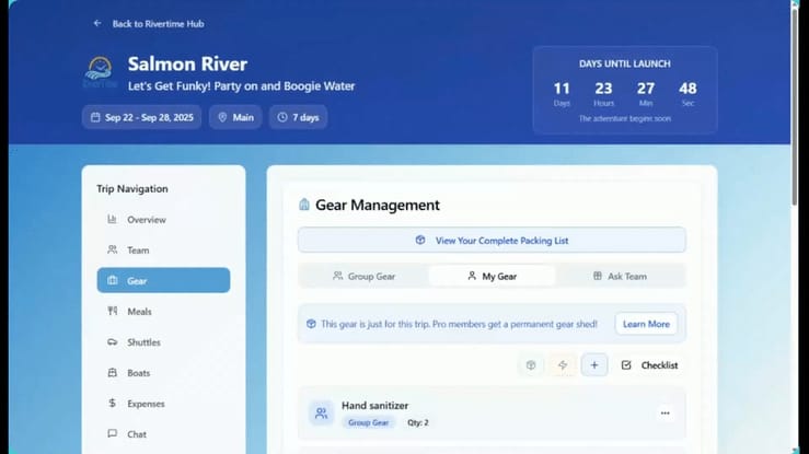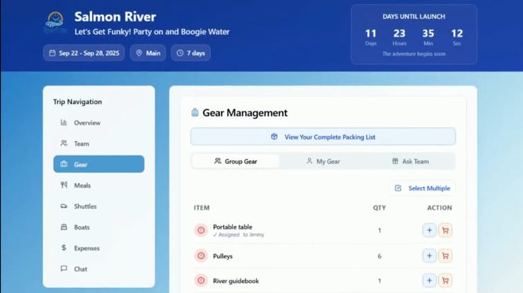 Plan Your Next River Trip Without Stress—All Your Gear, Guests, and Meals Organized in One Place.